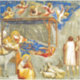 Sticker featuring Giotto’s fresco The Nativity (c. 1304). The Virgin Mary holds the newborn baby Jesus as angels above rejoice. Shepherds and their animals surround the stable. A touching gift for Christmas and religious celebration.
