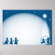 Simple blue and white silhouette Christmas nativity scene. Easily customize and add your own Christmas greeting or scripture verse in the space. Image available on various gifts and products.