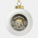 Bring the meaning of Christmas to your décor with this ornament featuring a serene Nativity scene of the Holy Family inside a beautifully detailed manger. Soft neutral tones, warm glowing light, layered paper-cut styling, and peaceful winter trees create a timeless and reverent look that adds spiritual warmth to any holiday display. Available as a ceramic ball ornament or a pewter snowflake ornament, each option showcases the artwork in vivid detail and hangs beautifully from its coordinating cord. Perfect for faith-based holiday décor, keepsake gifting, stocking stuffers, and anyone who loves traditional Nativity ornaments and Christian Christmas decorations.