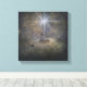 This is a reproduction of an original painting that I made, depicting the majesty of the nativity, a starry night, and Jesus as the gift of God. The star-filled sky represents the heavenly realm and the babe being passed from the spiritual to the earthly realm on that first Christmas.