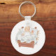 A baby in a crib in a nativity crib scene. This design looks really effective on these Keychain