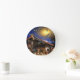 The clock did not take as long to arrive as I thought it might and was extremely well packaged. I didn't do the measurements so I didn't realize it is a little smaller than the average clock but that does not matter (just make sure you check if that's important to you).It is really nifty! It seems very solid and well made not flimsy at all. It has been going well and has kept good time in its few weeks on my wall. Nice product. Gets noticed too! Nicer in real life than the picture but true to the picture