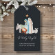 Charming dark blue nativity religious Christmas gift tags feature a beautiful watercolor nativity scene. They are perfect for sharing the season's joy with those closest to you. The words "O Holy Night" are elegantly written below the scene, representing the magic and wonder of Christmas.
