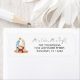 Nativity Scene All Is Calm All is Bright Return Name and Address. A modern illustration of Mary, Joseph and Baby Jesus in his manger is to the left and a line from the carol Silent Night in an elegant set script is above your return name and address details to the right.