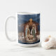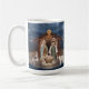 Beautiful Christian Christmas mug featuring a scene with Mary, Joseph and the infant Jesus Christ in the manger in Bethlehem. Christmas blessings coffee mug.