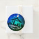 Nativity Scene in simple blue, green and black with white text for you to customize and white stars. Round Favor tag.