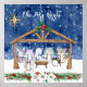 Cute little animals cats, bunnies gather around to worship the birth of Jesus.