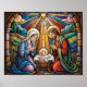 Nativity Stained Glass Art – Holy Family Christmas Poster