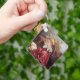 The key chain is made of metal and really sturdy. The flower design is really cheerful. The logo and colors are clear and crisp!