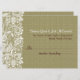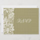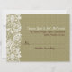 Elegant natural beige tones linen burlap look and vintage floral white lace design, RSVP wedding card.