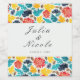 Natural Blue Yellow Watercolor Sunflowers Wedding Wine Label