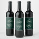 Elegant watercolor botanical foliage frame, personalised emerald green wine labels. Modern design style template provides lines for names, event date and location.