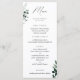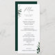 Natural botanical watercolor greenery. Modern and elegant signature calligraphy graphic "Menu", chic typography template with multiple lines for your custom menu items. Backing colour shown in dark forest green can be customised.