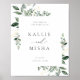Natural Botanic Greenery Frame, wedding welcome poster. Watercolor greenery with golden foliage accents.