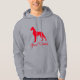 Fine Great Dane silhouette with natural ears, great to be combined with a special own statement or text. Red printing, Great Dane and text. Just write what you want.