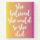 Brown skin, natural beauty with a cotton candy coloured afro, a layered necklace and hoops. On the back features the inspirational quote "She believed she could so she did".