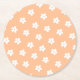 Natural Preppy Peach White Hippie Flower Pattern Round Paper Coaster