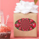 Natural Red Flower White Feather Kaleidoscope Art Oval Sticker