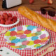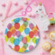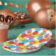 This party plate features a pattern of translucent birthday balloons in bright rainbow hues to coordinate with any colourful birthday theme across all aspects of your birthday party celebration.