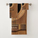 Natural Wood Acoustic Guitar Music Towel Set. A mahogany steel string guitar close-up musical bathroom towel set. A great gift for your favourite guitar player, musician or music lover, or for your music themed home or studio.