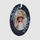This holiday season, commemorate a special year with this elegant personalized photo Christmas ornament. Graceful sprigs of icy blue painted watercolor mistletoe frame your photo, with your name and the year curving around. Add a second photo to the reverse side.