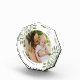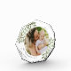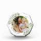 Commemorate a special moment, year, or vacation with this elegant personalised photo block in a unique geometric shape. Graceful sprigs of icy light green painted watercolor mistletoe frame your photo, with two fields for your custom captions (shown with your family name and the year).