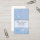 Two birds perch on branches over floral swirls on a blue background. The gentle hues make this design a pleasingly soothing business card that's suitable for personal name cards or business card for just about any type of business or industry.