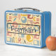 This is a standard metal lunchbox that appears to work just fine. We designed this box ourselves with an uploaded photo and custom text on the front and back. It looks absolutely beautiful except the front of the lunchbox is not centered like it shows in the photo. The print borders don't align with the inset flat part of the box where the preview photo online showed it perfectly centered in there. The back looks nice and centered though.