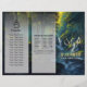 Yoga Fitness Studio / Meditation Instructor / Personal Trainer / Life Coach / Healer / Reiki Master / Massage Therapy Tri-Fold Brochures Template - A painting of a waterfall in a forest with a stream running through it and trees around it, with a sun shining through the trees. and the hidden Text "YOGA" in this painting.