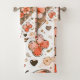 Butterflies, hearts, and flowers are beautifully depicted in this charming red and brown watercolor design.