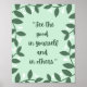 Brighten up any room with this inspirational poster featuring the motivational quote, "See the good in yourself and in others." Set against a calming green background with a nature-inspired leafy border, this poster is perfect for adding a touch of positivity to your home, office, or any space where a little encouragement is needed. The soothing colours and uplifting message make it a great reminder to focus on the positive aspects of life and to spread kindness.