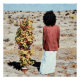 A surreal image set in a barren desert, featuring a figure with their back turned, wearing a red jacket and white skirt, staring at a small potted plant covered in vivid autumn leaves. The contrasting scene captures the intersection of human isolation and nature’s resilience, with vibrant foliage juxtaposed against the arid, desolate landscape. This composition emphasizes the tension between life and emptiness, growth and desolation, offering a thought-provoking visual narrative.