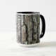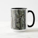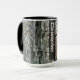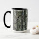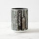 Opposite of mug's handle, there is a vertical semitransparent name banner. Banner is black and text is light. Text can easily be customised or rearranged. You can also adjust text font, size and colour.