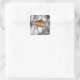 This square sticker features an orange monarch butterfly photo in colour that stands out against a background of black and white leaves. This simple yet stunning photograph is a reminder of the beauty of nature.