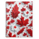 Spiral notebook featuring a bold red maple leaves pattern on a clean white background. The design stands out and fits school, office, and personal writing. Use it for class notes, daily planning, journaling, or creative ideas. A strong seasonal look inspired by fall and Canadian maple leaves.
