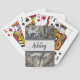 These playing cards feature a beautiful beach abstract pattern found on a piece of driftwood washed up on a California beach. The marbled brown, black, and grey colours create a unique background for a grey banner which supports your name. Personalise quickly and easily.