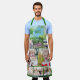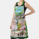 Bib apron with eight photo templates for pictures that wrap around the recipient.  Green grass and sunshine background image on a long apron.  The sample is for "DAD" but works for mum as well, if she likes a long apron. The title or name is printed over a light blue paint splatter image.  Easily fill the entire bottom of the apron with photos of the kids, pets, or anything. Two larger photos in the centre of a collage.  Three smaller photos at top and bottom.  Use the design tool to centre your photos (double click to move).  Makes a great Father's Day gift for a chef or grill master.