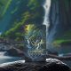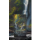 Yoga Fitness Studio / Meditation Instructor / Personal Trainer / Life Coach / Healer / Reiki Master / Massage Therapy 5 Class Pass Loyalty Card Template - A painting of a waterfall in a forest with a stream running through it and trees around it, with a sun shining through the trees. and the hidden Text "YOGA" in this painting.