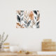 This print features a modern art abstract image of several botanicals in neutral shades of muted tan or beige and grey on a white background. This pretty poster has a boho chic aesthetic and will provide a touch of nature and sophistication to a living room, bedroom or bathroom. This unframed print is available in various sizes to fit standard frames.
