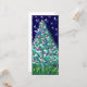 Vibrant colored letters, trees, holly and cancy canes in a cheerful message suitable for a non-religious holiday greeting. I especially liked it on the black background which made the design pop.