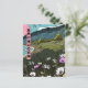 Natures Costal Meadow, wildflower Japanese Vintage Seascape with seagulls flying over the sea.