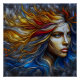 Experience 'Nature's Embrace,' a captivating portrait in abstract artwork style. Textured lines, akin to tree roots, gracefully intertwine with a stone surface. Hairs spread like nature's tendrils, penetrating crevices. Artistic colouring in blue, red, and yellow enhances the beautiful facial contours, creating a harmonious fusion of art and natural beauty.