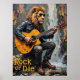 This captivating painting features a lion, complete with sunglasses and a leather jacket, deeply immersed in a "nature's stage jam" on an acoustic guitar. He's balanced on a log beside a flowing waterfall and a blue stream. The vibrant, textured brushwork creates a lively and exhilarating atmosphere, perfectly conveying the "Rock or Die" vibe of this unique outdoor concert