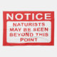 A fun naturist tea towel sign warning of the presence of Naturists!