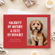Celebrate the holidays with the "Naughty and Cute Funny Dog Christmas Photo Holiday Card." Featuring a charming pet dog with the playful message "Naughty by Nature & Cute by Default," this card brings humour to your xmas greetings. The bold red background adds a festive touch, making it perfect for spreading holiday cheer to fellow dog lovers. Personalise it with your family's name for a unique and heartfelt merry Christmas greeting.