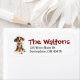 Add festive charm to your holiday mail with these personalised Christmas return address labels featuring a mischievous cartoon puppy tangled up in twinkling Christmas lights. The playful illustration sets a lighthearted holiday tone, perfect for spreading cheer with every card, package, or letter. Each label is fully customisable with your name and address, with the name printed in a bold red handwritten block font for a fun seasonal touch. A budget-friendly way to make your Christmas cards and gifts extra special, these labels bring a mix of cuteness, humour, and holiday spirit to your mailings.