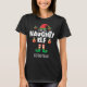 Get into the holiday spirit with this humourous Naughty elf t-shirt which is part of a matching family elf outfit collection containing gifts for any member of the family. Perfect for any Christmas family reunion, this t-shirt features a cute elf hat and fun legs, with the caption "Naughty elf" in a white modern all-caps font. The shirt is easily customisable with your name.