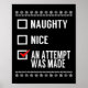 Naughty Nice An Attempt Was Made - Christmas Check Poster
