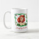 Fun coffee mug for the Holidays features a retro redhead pinup girl with Christmas holly frame and "Naughty & Nice" text.