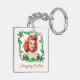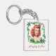Fun keychain for the Holidays features a retro redhead pinup girl with Christmas holly frame and "Naughty & Nice" text. Great gift idea!